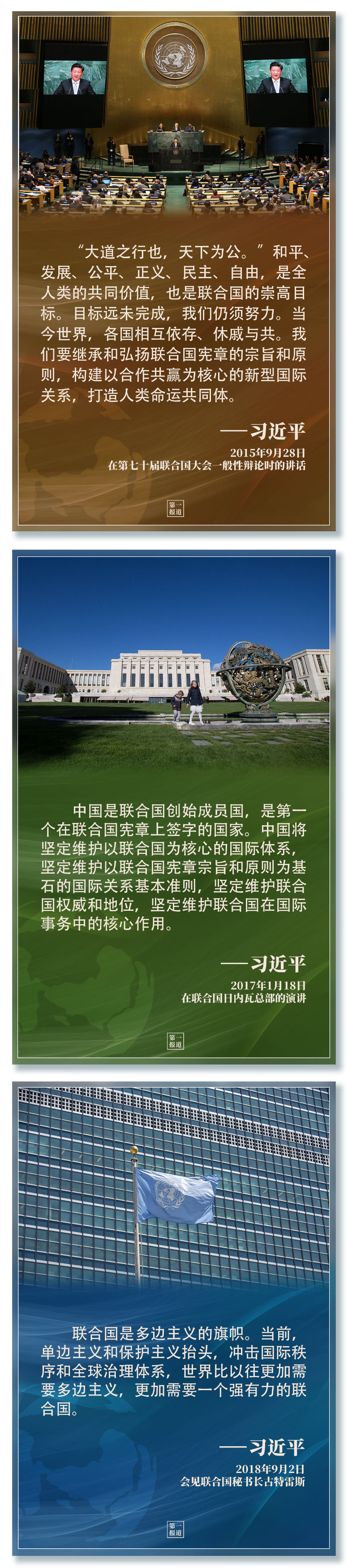 習主席指出,“支持聯合國發揮作用,維護聯合國權威和地位,是中國外交一項基本政策。”2013年以來,習主席多次會見聯合國主要官員,訪問聯合國總部及聯合國專門機構,出席一系列聯合國活動……親自推動中國同聯合國的合作,發出支持聯合國事業、捍衛多邊主義的中國強音。