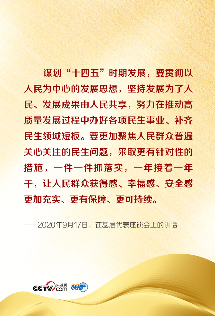 會議當中,習近平總書記反復強調謀劃“十四五”時期發展,要貫徹以人民為中心的發展思想,要求“十四五”規劃編制要順應人民意愿、符合人民所思所盼。