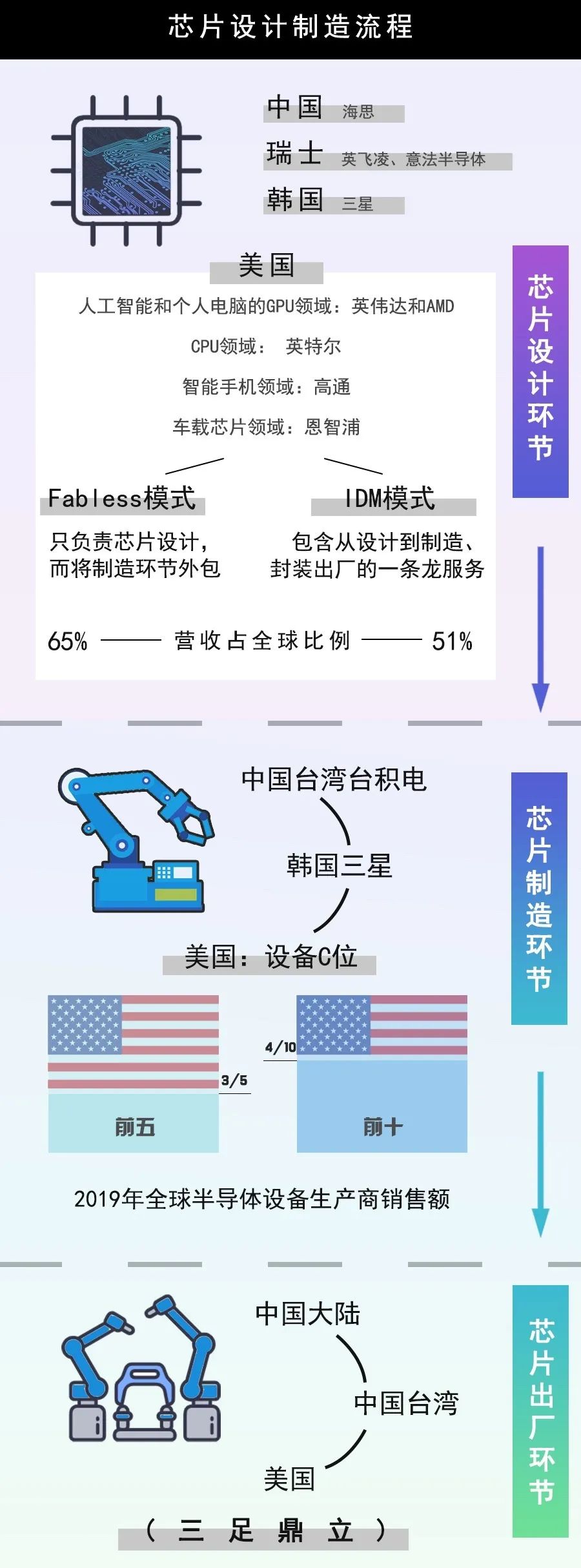 ▲ 滑動查看芯片設計制造全流程中各國位置