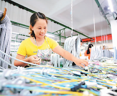江西省吉安市峽江縣認真落實減稅降費、援企穩崗、紓困解難等政策措施,集中力量助推企業復工達標、復產達效。圖為工人在吉安市峽江縣坤誠電器有限公司生產電源線。