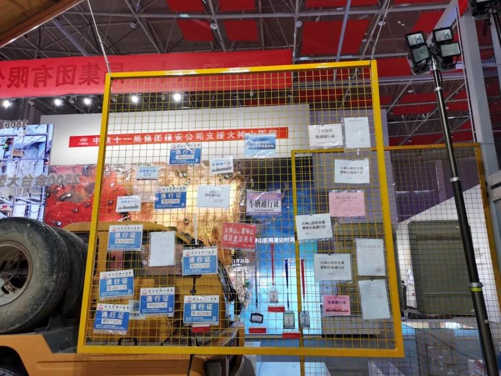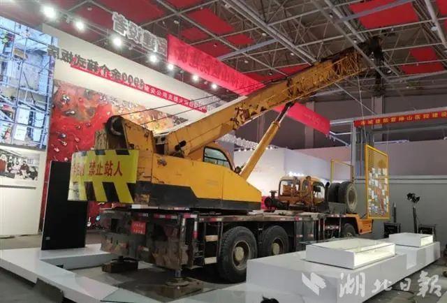 展覽還原火神山醫(yī)院、雷神山醫(yī)院建設(shè)的場景,大型吊車、病房、車輛通行證、工作服等實(shí)物均被搬到現(xiàn)場。