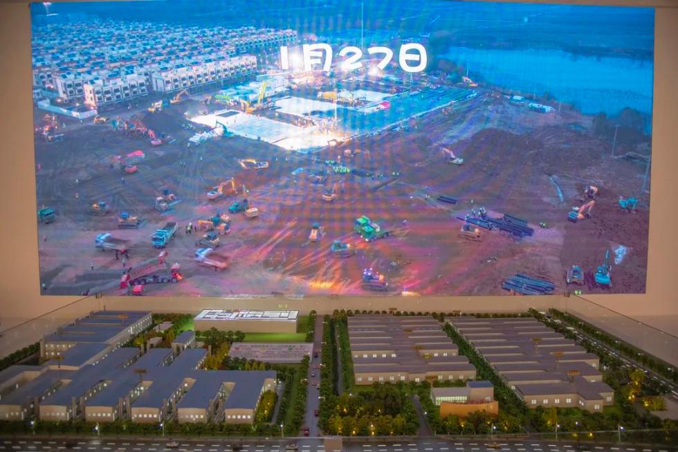 同時(shí),通過沙盤模型、照片、視頻等,展現(xiàn)約4萬名建設(shè)者從八方趕來,用10天左右時(shí)間建成“兩山”醫(yī)院的壯舉。