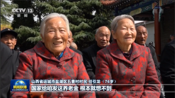 山西省運城市鹽湖區五曹村村民 任引龍(76歲):國家給咱發這個養老金,根本就想不到政策這么好,國家對老年人這么關心。