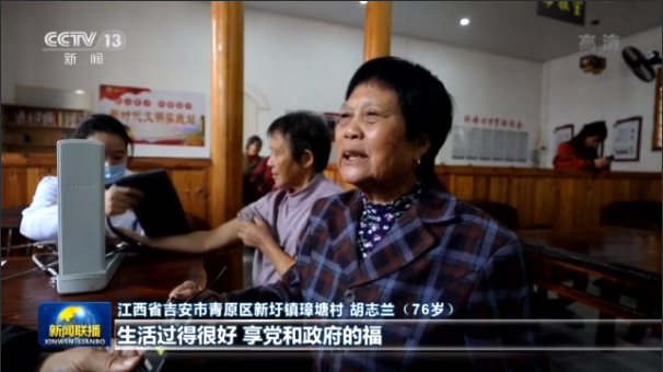 江西省吉安市青原區新圩鎮璋塘村 胡志蘭(76歲):現在吃飯有政府管,吃得很好,有病醫生會上門給我們看,現在生活過得很好,享黨和政府的福。