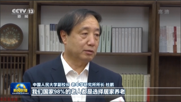 中國人民大學副校長 老年學研究所所長 杜鵬:我們國家98%的老人都是選擇居家養老,城鄉社區養老服務的發展就是順應了老人這種需要,通過發展社區養老服務機構,老年人實現了不離開家就能得到相應的養老服務。