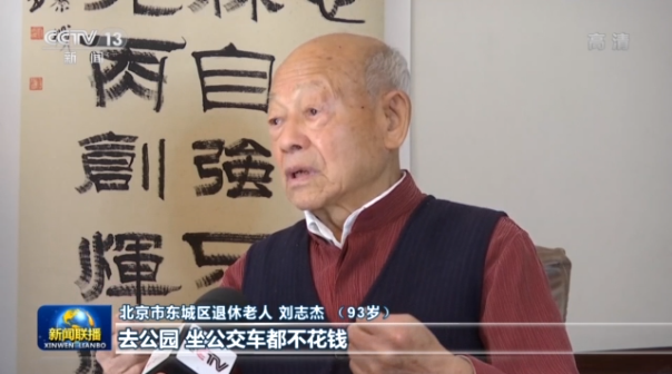 北京市東城區退休老人 劉志杰(93歲):原來90歲給200元(高齡津貼)現在給500了,去公園、坐公交車都不花錢,而且工資年年調整,我們得到這么多實惠非常感謝習近平總書記,我還要在總書記領導下健健康康多活些年。