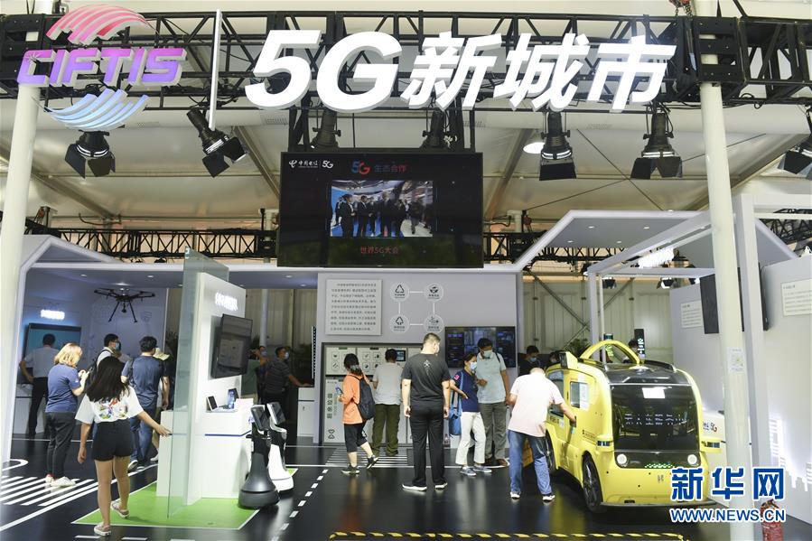 觀眾在2020年中國國際服務貿易交易會5G通信服務專題展區參觀(2020年9月7日攝)。 新華社記者 魯鵬 攝