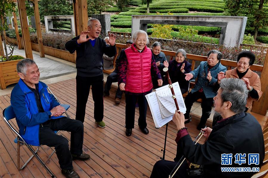 老人在福建省武夷山市社會福利中心唱歌(2018年11月1日攝)。 新華社記者 張國俊 攝