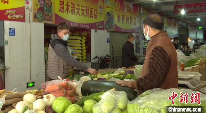 在莎車縣城西街道新盛農貿市場門口,工作人員對每位進入市場的居民測量體溫,并提醒大家正確佩戴口罩。莎車縣城西街道嘉和社區主任趙新武告訴記者:“在保證各類水果、蔬菜及肉類供應的同時,社區工作人員每天都會不定時地對市場內所有貨物進行抽查,確保安全。”