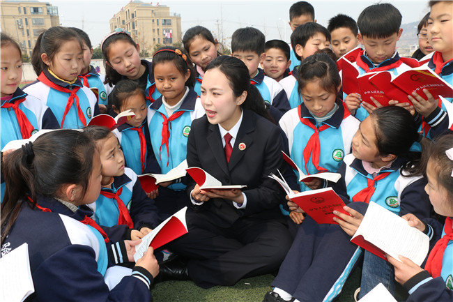 江蘇省灌云縣檢察院干警開展法治進校園普法宣傳活動。吳晨光攝
