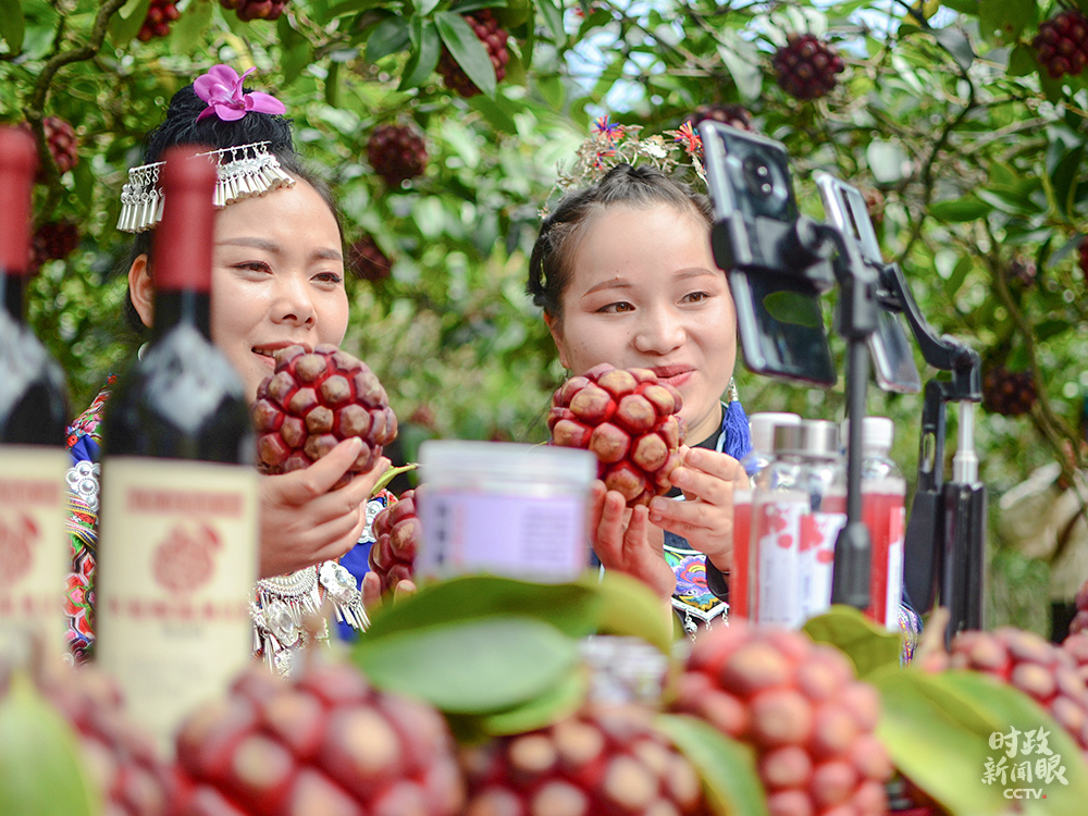 △貴州錦屏縣電商直播帶貨現場。這是當地特色水果,苗語叫“布福娜”。