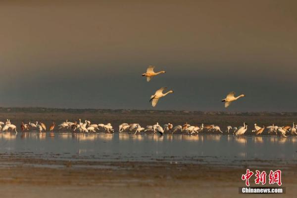 候鳥小鎮還設立了專業的鳥類醫院——白鶴醫院,對受傷的鳥類進行治療,并成立專業的鳥類醫療科研團隊。圖為鄱陽湖區的過冬候鳥。 江西九江永修縣委宣傳部供圖
