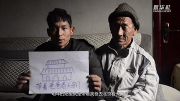 “明年愿望是帶著我爸去北京看天安門。”小丁說完,父子倆對著笑開了。