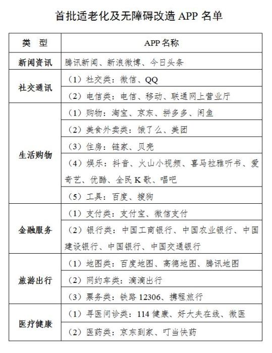開展老年人、殘疾人常用移動互聯(lián)網(wǎng)應用(APP)的適老化及無障礙改造。立足老年人、殘疾人的實際生活體驗,豐富滿足其需求的移動互聯(lián)網(wǎng)應用(APP)種類和功能,對《工業(yè)和信息化部 中國殘疾人聯(lián)合會關于推進信息無障礙的指導意見》(工信部聯(lián)信管〔2020〕146號)中列出的移動互聯(lián)網(wǎng)應用十大領域、注冊用戶數(shù)超過5000萬人、同類產(chǎn)品中市場份額排名前5名的APP進行適老化及無障礙改造。首批優(yōu)先推動新聞資訊、社交通訊、生活購物、金融服務、旅游出行、醫(yī)療健康等6大類、共43個APP進行適老化及無障礙改造(APP名單見附件2)。中國信息通信研究院協(xié)助各互聯(lián)網(wǎng)企業(yè),在開發(fā)設計移動互聯(lián)網(wǎng)應用(APP)的過程中落實信息無障礙有關標準的要求,并將無障礙優(yōu)化納入產(chǎn)品及服務的日常維護流程。