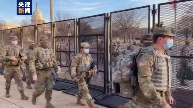 連日來,美國首都華盛頓的安保措施日趨嚴(yán)密,國民警衛(wèi)隊隊員荷槍實彈巡邏。五角大樓日前宣布,已派遣2.5萬名國民警衛(wèi)隊士兵協(xié)助總統(tǒng)就職典禮的安保工作。