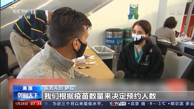 畫面中這家位于美國(guó)亞特蘭大市的新冠疫苗大型接種中心每天可以接待2000人,但1月25日當(dāng)天,該中心只開放了150個(gè)預(yù)約名額。