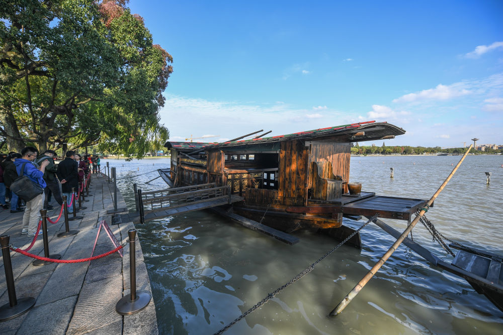 △ 2020年10月27日拍攝的停靠在嘉興南湖湖心島的南湖紅船。新華社記者徐昱攝
