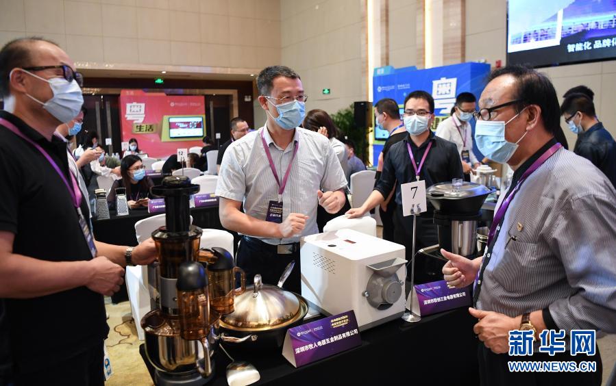 在第128屆網(wǎng)上廣交會的線下雙循環(huán)貿(mào)易促進活動上,企業(yè)代表和采購代表洽談業(yè)務(2020年10月16日攝)。新華社記者 鄧華 攝