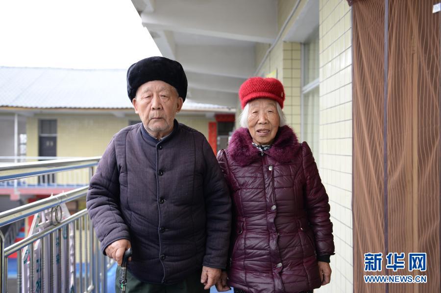這是1月27日在湖南省張家界市永定區大溶溪光榮院拍攝的侯宗元(左)和老伴田益姑。新華社記者 陳振海 攝