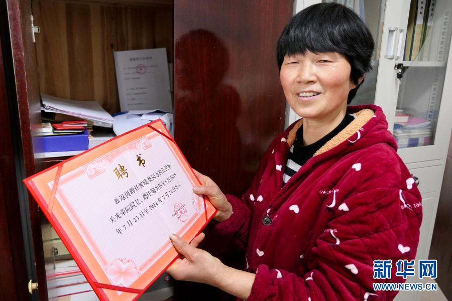 1月26日,湖南省張家界市桑植縣洪家關光榮院院長賀曉英展示“返聘證書”。30多年來,賀曉英服務過100多位革命老人。新華社記者 蘇曉洲 攝