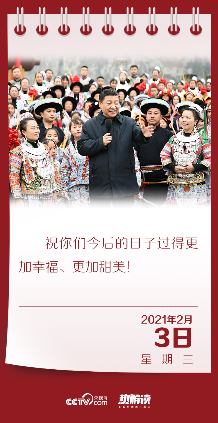 春節(jié)前夕,習(xí)近平總書記赴貴州考察調(diào)研并看望慰問基層干部群眾。2月3日下午,他來到畢節(jié)市黔西縣,走進(jìn)新仁苗族鄉(xiāng)化屋村看望鄉(xiāng)親們。在村文化廣場(chǎng),總書記同參加少數(shù)民族春節(jié)民俗活動(dòng)的群眾親切交流,并向全國(guó)各族人民致以新春祝福。
