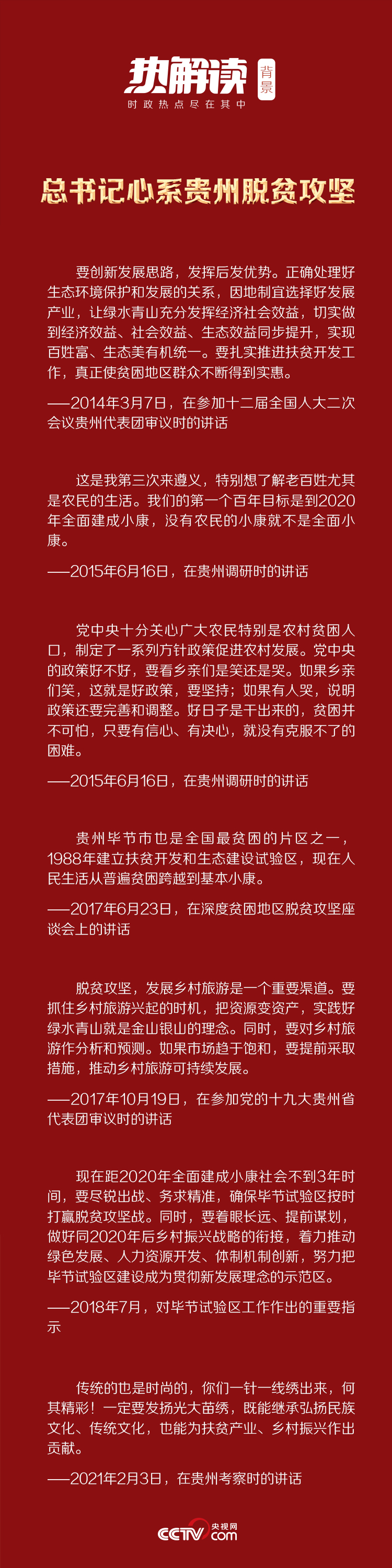作為脫貧攻堅(jiān)的主戰(zhàn)場(chǎng),貴州一直為總書記所牽掛。無論是考察調(diào)研,還是全國(guó)兩會(huì)、黨代會(huì)等重要場(chǎng)合,總書記都經(jīng)常談起貴州。
