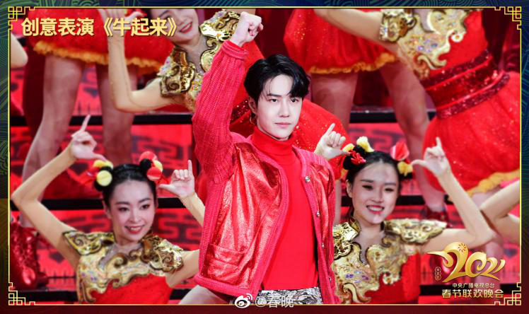 春晚舞臺上,劉德華、關(guān)曉彤、王一博共同演繹創(chuàng)意表演《牛起來》
