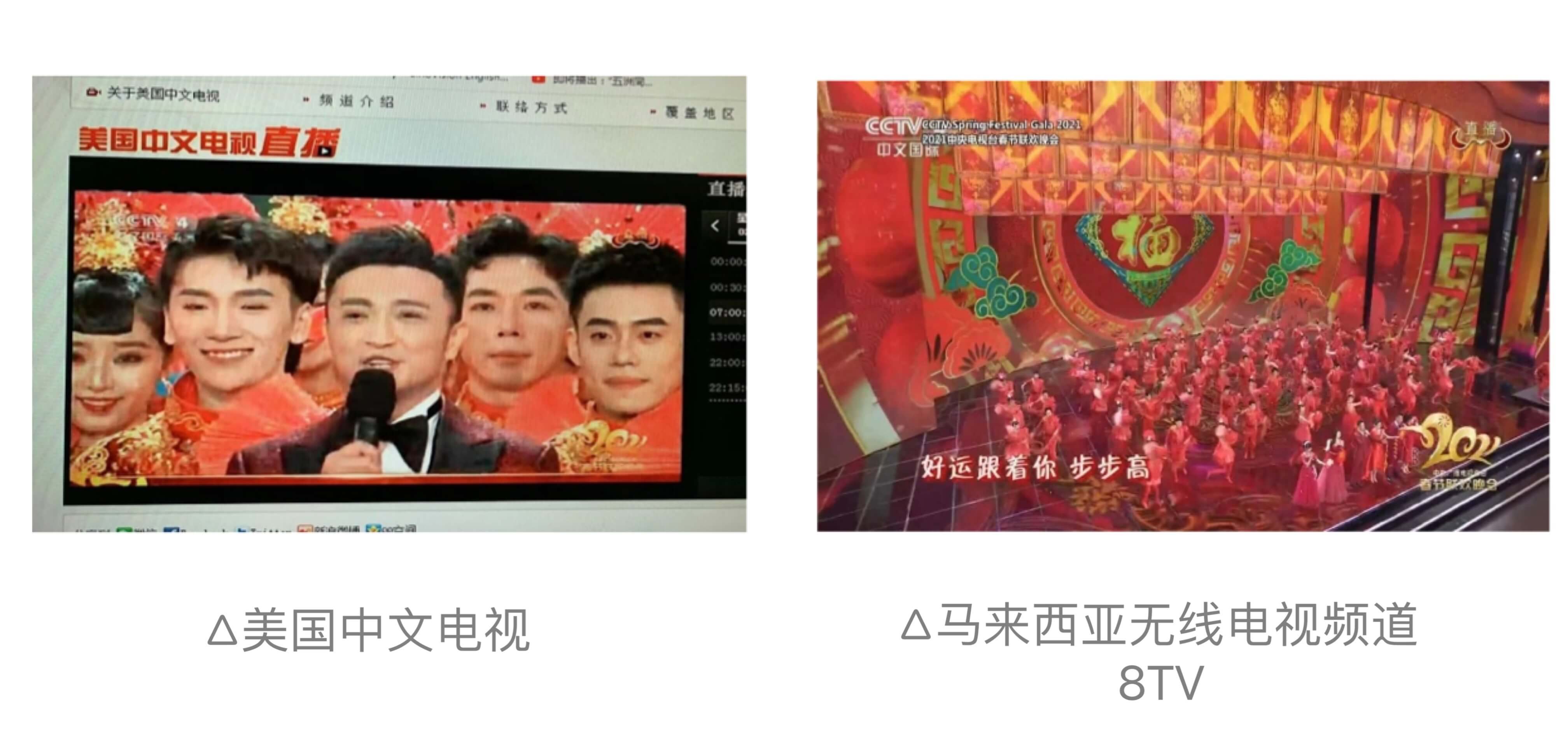 2021年春晚圓滿落幕,通過總臺多語種、全媒體平臺和覆蓋全球的傳播渠道,春晚的海外影響力和關注度再創紀錄。據統計,全球170多個國家和地區的620多家媒體對春晚進行播出。其中,美國、法國、德國、意大利、俄羅斯、日本、巴西、澳大利亞、印度、阿聯酋、馬來西亞、南非等國家和地區的358家主流電視臺、電臺和新媒體對春晚進行實況轉播或錄播,全面覆蓋G7、G20、“一帶一路”沿線國家等重點國家、主流媒體和重點人群,并在部分國家實現突破。