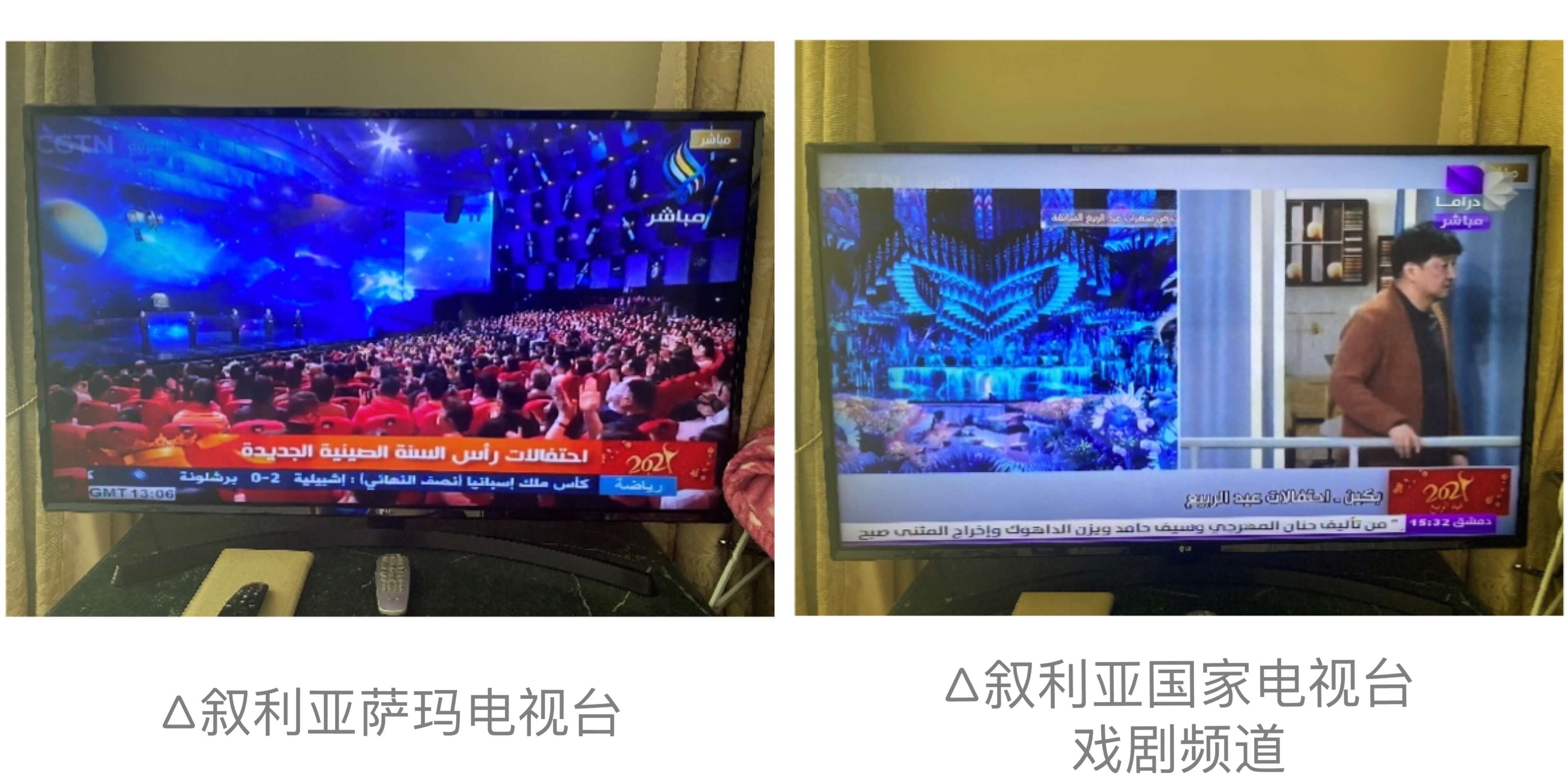 在中東地區,巴勒斯坦國家電視臺、黎巴嫩國家電視臺、敘利亞薩瑪電視臺和敘利亞國家電視臺綜合和戲劇頻道同步轉播了阿拉伯語春晚。