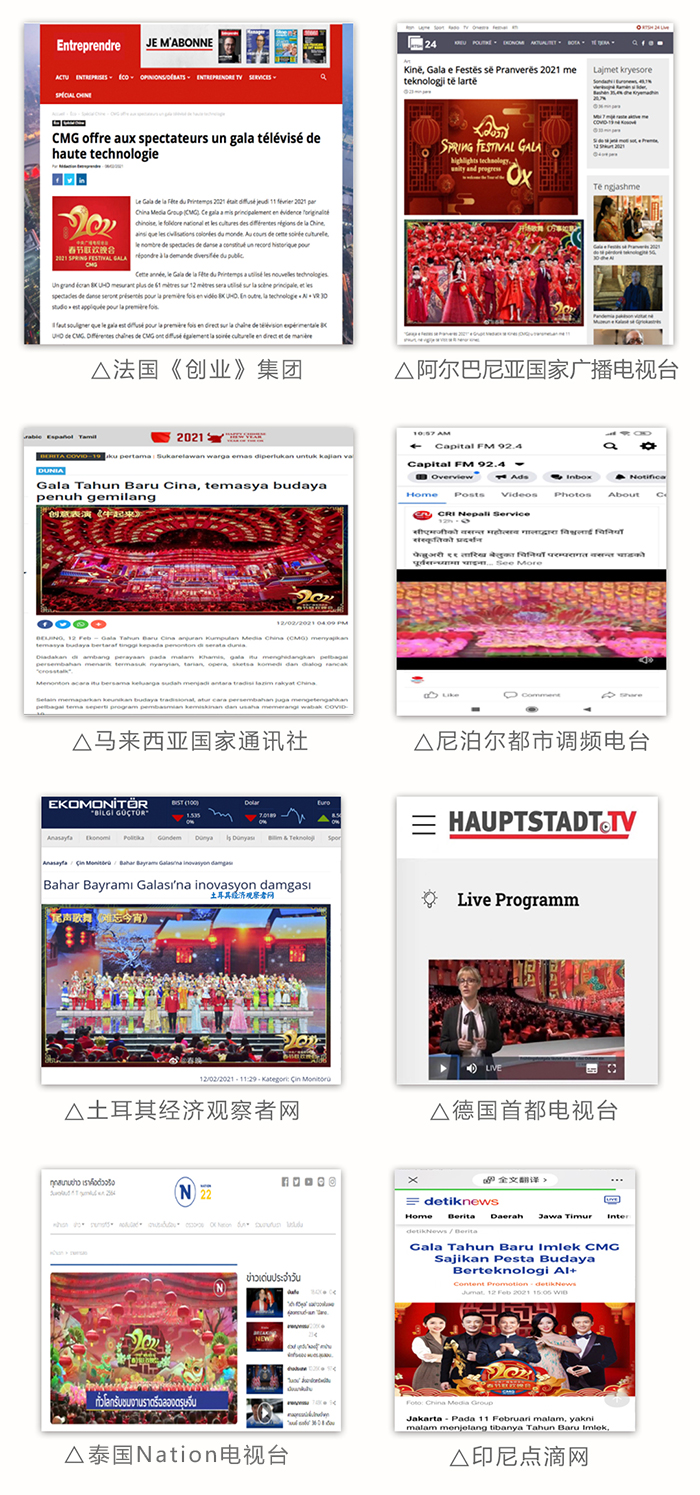 法國《創業》媒體集團網站、德國首都電視臺、阿爾巴尼亞國家廣播電視臺官網、馬來西亞國家通訊社、尼泊爾都市調頻電臺、土耳其經濟觀察者網、斯里蘭卡國家電視臺、泰國Nation電視臺、印尼點滴網等媒體高度評價春晚創新采用前沿技術手段,充分展示了總臺“5G+4K/8K+AI”發展的最新成果。