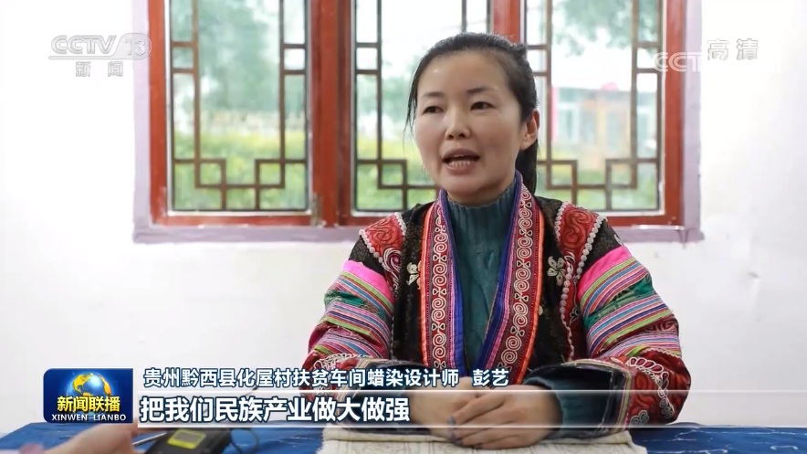 貴州黔西縣化屋村扶貧車間蠟染設(shè)計師 彭藝:把我們民族產(chǎn)業(yè)做大做強,讓我們苗族同胞的生活,過得像我們蠟染刺繡一樣精彩。