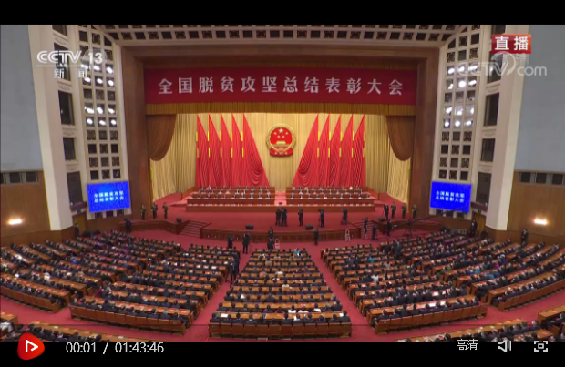 央視網(wǎng)消息:全國脫貧攻堅(jiān)總結(jié)表彰大會(huì)2月25日上午在北京人民大會(huì)堂隆重舉行。中共中央總書記、國家主席、中央軍委主席習(xí)近平向全國脫貧攻堅(jiān)楷模榮譽(yù)稱號(hào)獲得者頒獎(jiǎng)并發(fā)表重要講話。