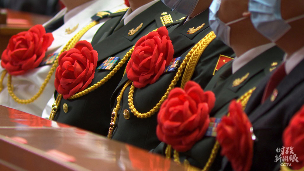△當(dāng)天受到表彰的代表均佩戴紅花。(總臺(tái)央視記者楊波拍攝)