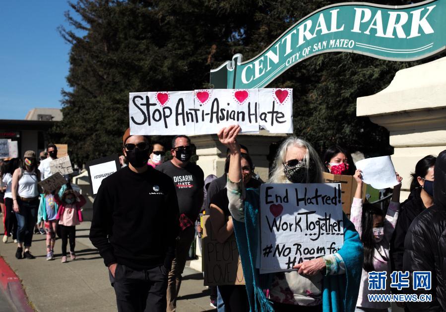 2月27日,在美國(guó)加利福尼亞州舊金山灣區(qū)圣馬特奧市,人們參加集會(huì)反對(duì)針對(duì)亞裔的歧視行為和仇恨犯罪。