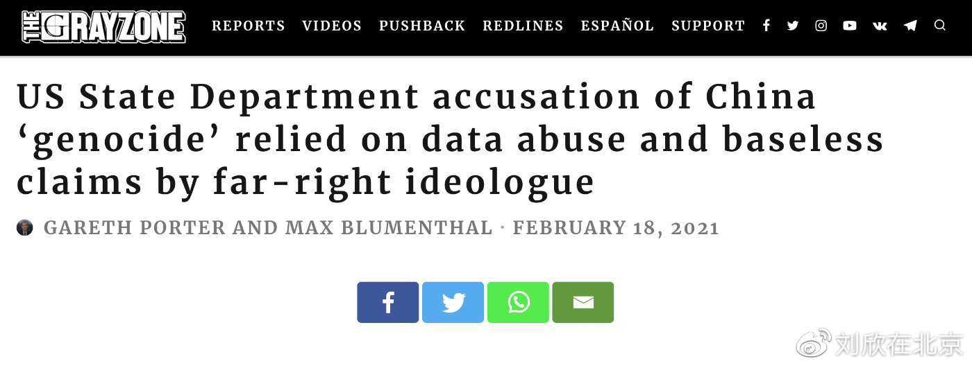 劉欣:在“灰色地帶”網(wǎng)站上,題為《美國國務院對中國“種族滅絕”的指控基于數(shù)據(jù)濫用和極右翼分子毫無根據(jù)的斷言》這份報告中,你駁斥了鄭國恩對中國的所謂“種族滅絕”指控,稱他是“右翼宗教極端分子”,他的研究是明目張膽的數(shù)據(jù)濫用和徹頭徹尾的謊言。是什么促使“灰色地帶”在此時發(fā)表這樣一篇報道呢?