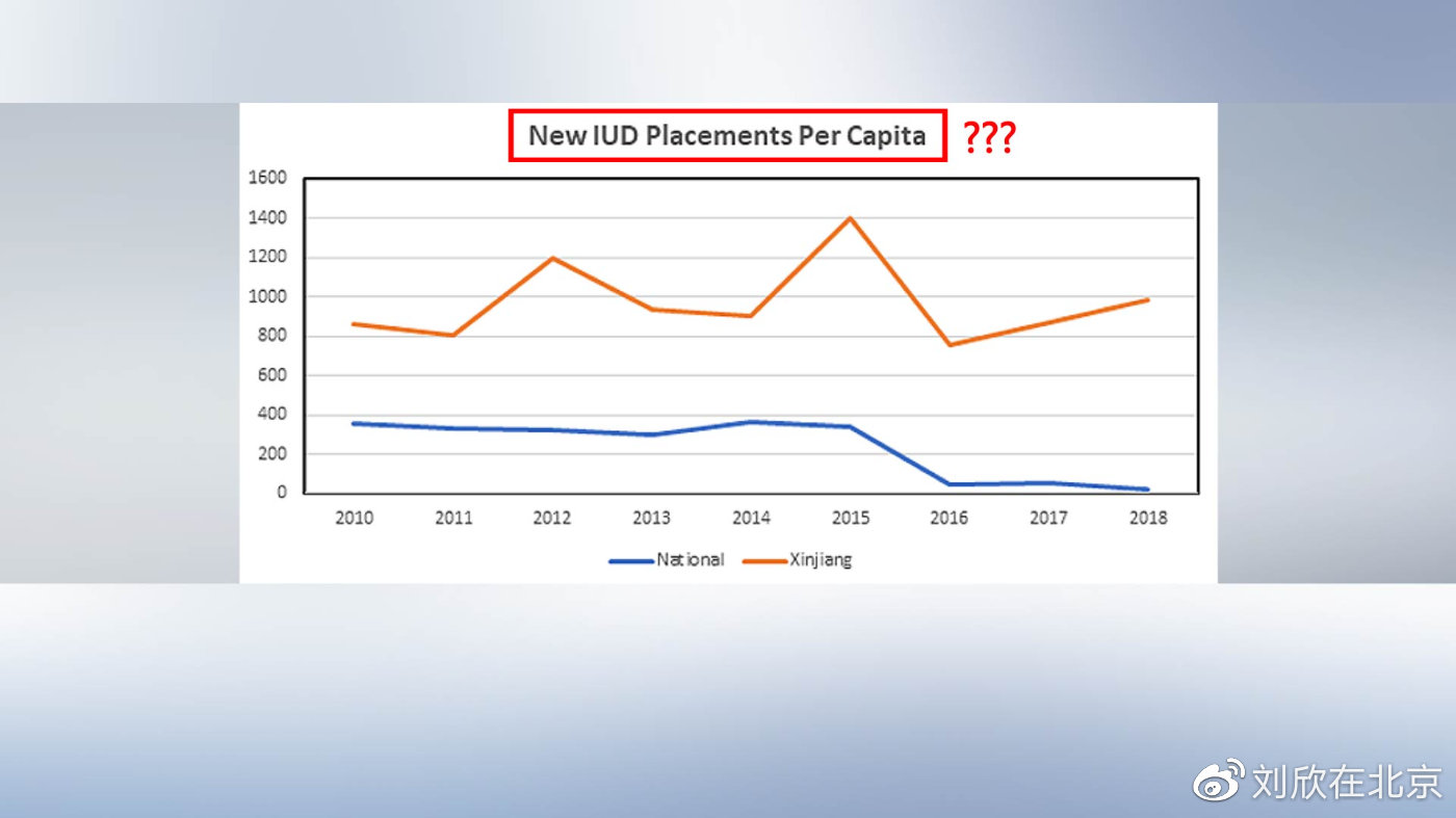 這是純粹的捏造。更糟糕的是,在鄭國恩的“論文”中有一個圖表,他聲稱新疆的婦女(年)人均接受的節(jié)育器植入數(shù)量在800到1400個之間。這意味著什么?根據(jù)鄭國恩的說法,新疆婦女每人每天都要接受4到8次節(jié)育器放置手術。一個人怎么可能在一天內(nèi)接受那么多次節(jié)育手術呢?這完全不符合常識。