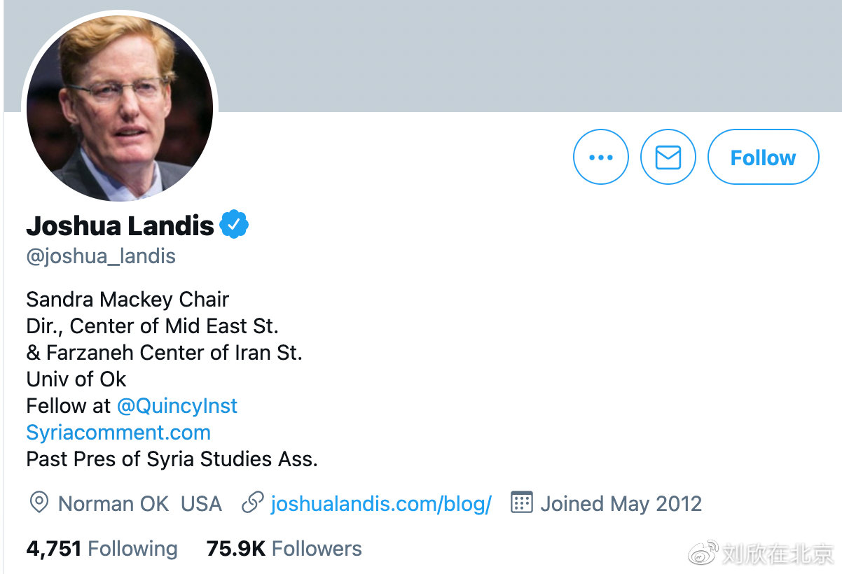 △美國著名敘利亞問題專家約書亞·蘭迪斯的推特賬號