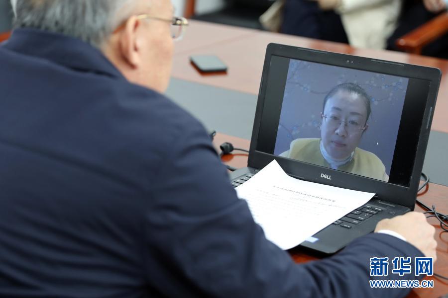 3月7日,全國人大代表、山東省泰安市農(nóng)科院食用菌研究所所長孔怡(屏幕畫面中)同農(nóng)業(yè)農(nóng)村部種業(yè)管理司副司長孫好勤在北京進(jìn)行網(wǎng)絡(luò)視頻連線。這是一次不尋常的兩會“速遞”:3月5日代表提出建議,3月6日建議經(jīng)國務(wù)院辦公廳轉(zhuǎn)到農(nóng)業(yè)農(nóng)村部,3月7日中午就實現(xiàn)了部門與代表的“云對話”。新華社記者 李木子 攝