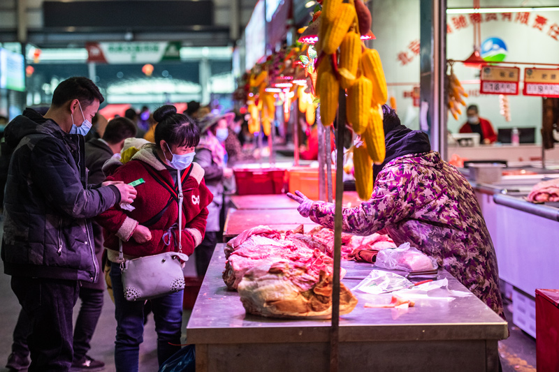 2月9日,市民在貴陽農產品物流園買肉。新華社記者 陶亮 攝