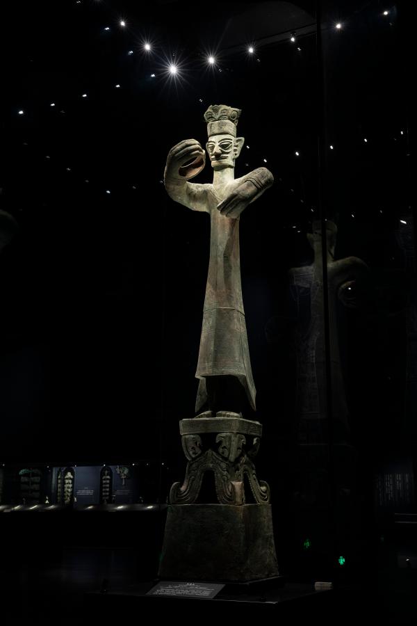 三星堆“青銅大立人”。(新華社記者沈伯韓攝)
