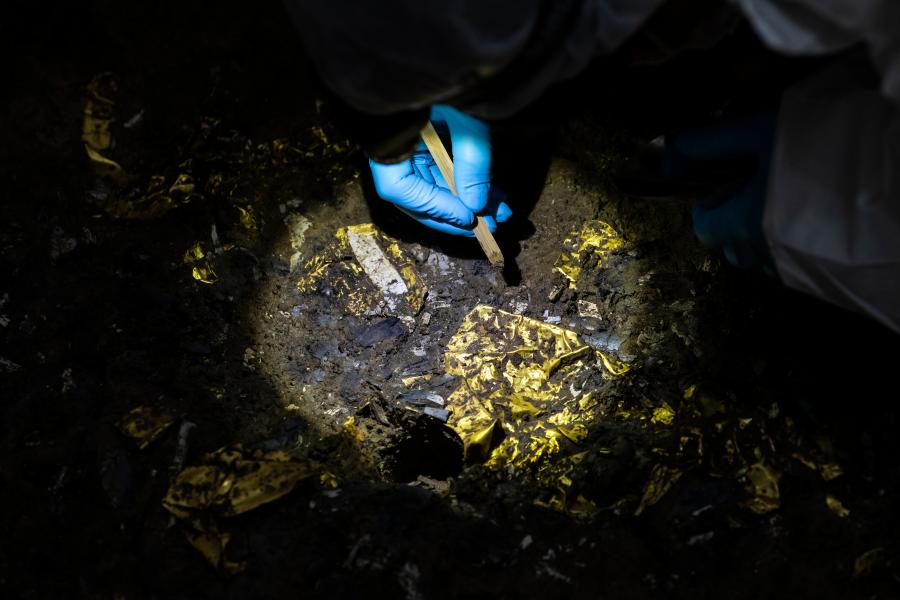 5號“祭祀坑”發現的金器。(新華社記者沈伯韓攝)