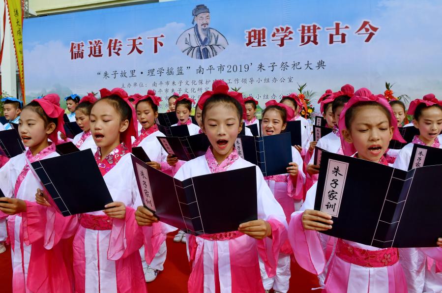 2019年10月18日,小學生在福建省建甌市舉行的朱子祭祀大典上誦讀《朱子家訓》。新華社記者 張國俊 攝