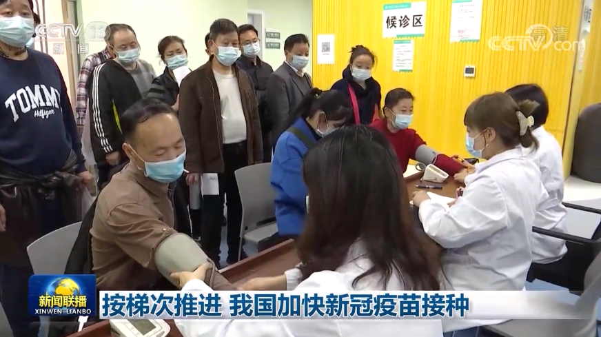 央視網(wǎng)消息(新聞聯(lián)播):我國目前正按梯次推進(jìn),加快新冠疫苗接種進(jìn)度,提高人群接種率。