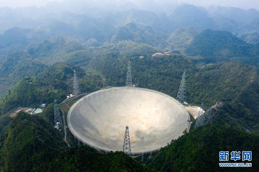 3月28日拍攝的“中國天眼”全景(維護保養(yǎng)期間拍攝,無人機照片)。