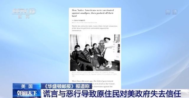 當地時間3月28日,《華盛頓郵報》刊登名為《美國原住民歷史:天花疫苗與驅逐家園》的專題報道。文章對美國聯邦政府長期以來針對印第安原住民的謊言與惡行進行了回溯,并指出歷史的創傷導致印第安原住民對美國政府失去信任。
