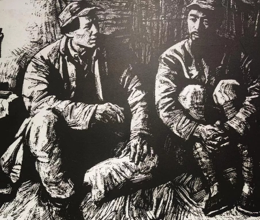 版畫《毛澤東深夜到周恩來住處做說服工作》