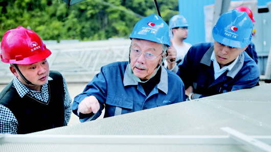 今年2月,在貴州考察調(diào)研期間,習(xí)近平通過視頻察看“中國天眼”現(xiàn)場,并同總控室的科技工作者代表連線,勉勵廣大科技工作者以南仁東等杰出科學(xué)家為榜樣,大力弘揚科學(xué)家精神,勇攀世界科技高峰,在一些領(lǐng)域?qū)崿F(xiàn)并跑領(lǐng)跑,為加快建設(shè)科技強國、實現(xiàn)科技自立自強作出新的更大貢獻(xiàn)。