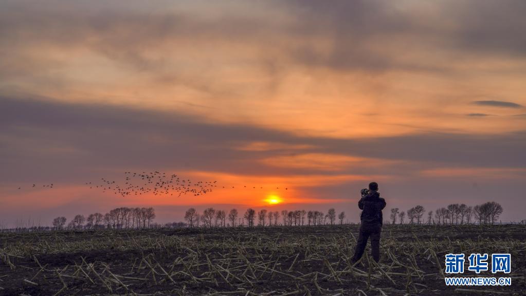 3月30日,在白城市鎮(zhèn)賚縣,護飛隊長潘晟昱拍攝候鳥。新華社記者 顏麟蘊 攝