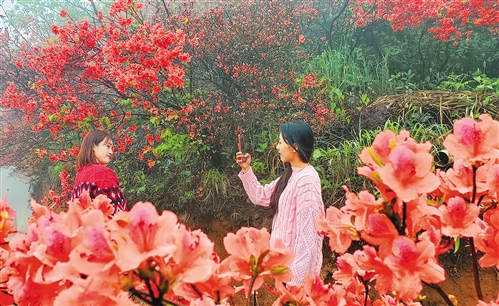 湖南省常寧市天堂山杜鵑花競相綻放,吸引眾多游人前來游玩,感受愜意的春日氣息。周秀魚春攝