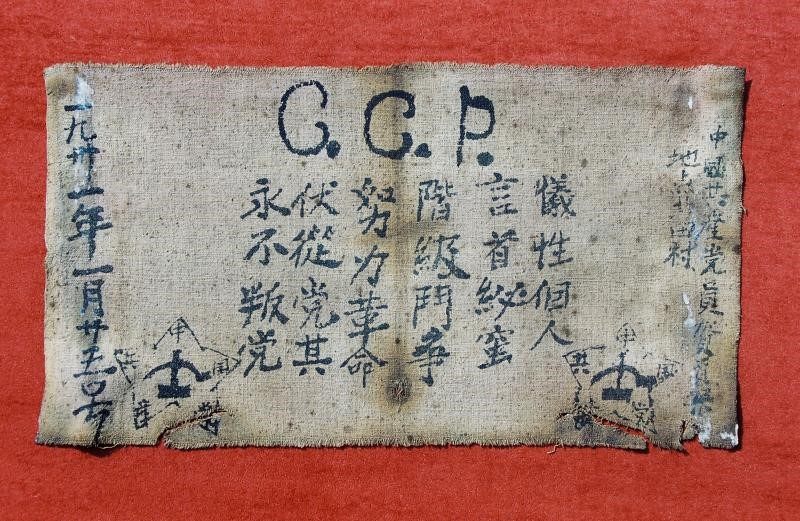 在這份24個字的入黨誓詞中,有6個錯別字格外引人注目。中共永新縣委史志辦主任彭朝勝介紹,由于條件有限,當時,只準備了一塊紅布,入黨介紹人發現有錯別字,要再寫也沒有布了,所以就將錯就錯,就把這個作為入黨宣誓書的誓詞。